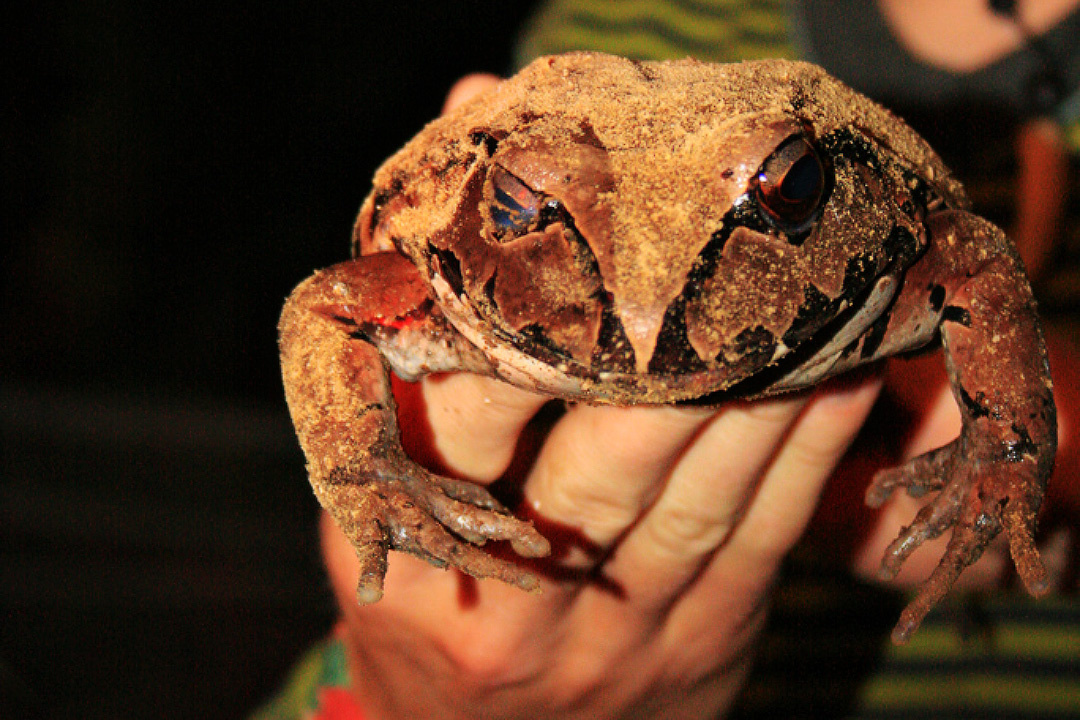 Привет, мои дорогие любители необычной земной фауны. Сегодня у нас примечательное земноводное, которое вполне заслуживает пополнить ряды экстраординарных планетян. Итак, прошу любить и жаловать – пятипалый свистун (Leptodactylus pentadactylus), одно из крупнейших земноводных Южной Америки, представляющее довольно обширный род свистунов, насчитывающий более семидесяти видов. Мы привыкли, что бесхвостые амфибии у нас делятся на лягушек и жаб, более продвинутые натуралисты скажут, что имеются также квакши, чесночницы и жерлянки. Но в мире существуют и другие семейства бесхвостых амфибий и свистуны - одно из них. Если брать внешне, то мне они, конечно, больше напоминают именно лягушек. Но я поинтересовался этим вопросом, и выяснил, что ошибся. Свистуны являются роднёй жабам. Эти земноводные достигают восемнадцати сантиметров в длину, и уступают в размерах на своём континенте, пожалуй, только шлемоголовому свистуну. Примечательно, что в случае опасности эта амфибия встаёт на лапах так, что