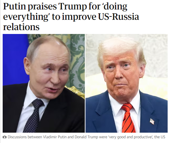 Самое интересное, что пишет об этом западный источник - The Guardians: Владимир Путин похвалил Дональда Трампа за то, что он «делает все» для улучшения отношений между Москвой и Вашингтоном, после того как Трамп заявил, что в последние дни у США были «очень хорошие и продуктивные дискуссии» с Путиным. Путин сообщил на совещании своих руководителей служб безопасности, что улучшение отношений с США теперь на повестке дня. «Мы знаем, что новая администрация во главе с президентом Трампом делает все, чтобы восстановить хотя бы что-то из того, что было по сути разрушено предыдущей администрацией США», — сказал он. Путин также ответил на призыв Трампа спасти жизни «тысяч» окруженных солдат противника и сказал, что прислушается к нему, если солдаты сдадутся. Но никаких доказательств, подтверждающих заявления Путина и Трампа о крупномасштабном окружении войск, в официальном информационном поле не появлялось. Обмен теплыми словами между Трампом и Путиным, вероятно, вызовет еще большую тревогу в