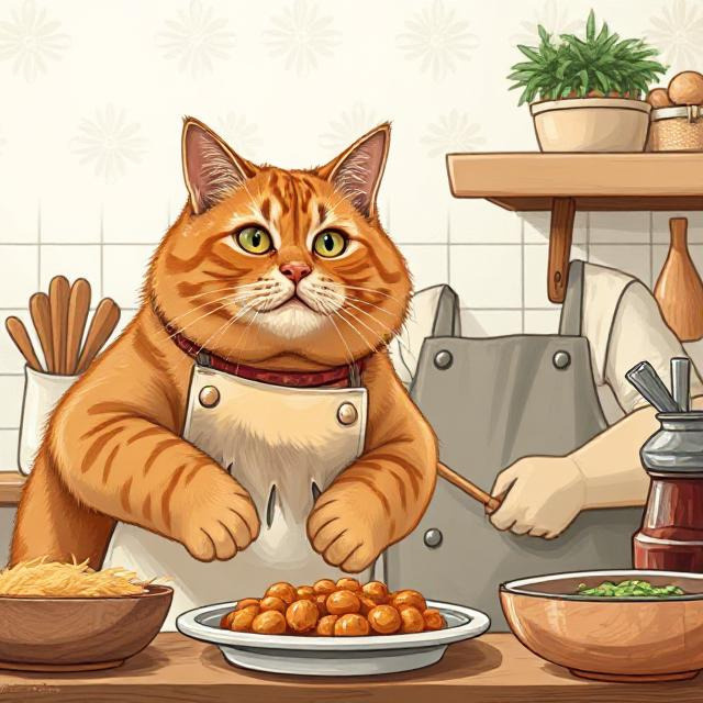 В одном уютном доме, где пахло мятой и свежими огурцами, жил рыжий кот по имени Базилик. Он был не просто котом — он был гурманом с амбициями. Его мечтой было стать великим шеф-поваром, и однажды он решил доказать всем, что даже кот может приготовить что-то грандиозное. Выбор пал на салат оливье — блюдо, которое, по его мнению, было вершиной кулинарного искусства.