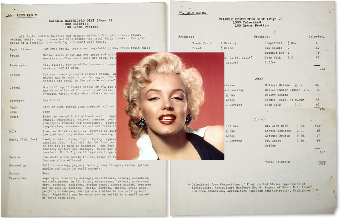 Часто во время съемочного процесса Мэрилин сажали на диету, которую ей приходилось соблюдать. Эта диета сохранилась, ее оригинал был продан на аукционе.