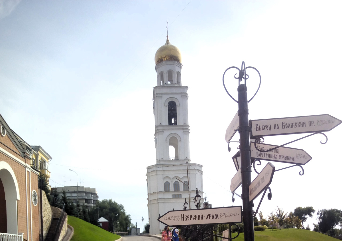 Улица Фрунзе 157а. Далее спускаемся в Бункер Сталина. Улицы Фрунзе, 167, Шостаковича, 2. Сразу переносимся в старое время... Выходим из бункера и переходим в Пушкинский сквер. Виды на Волгу Вид на Жигулевский пивзавод. Волжский проспект, 4. Идем к Иверскому монастырю. Волжский проспект, 1. Храм святителя Николая в колокольне. Пивзавод поближе. Вид из Монастыря. Далее перемещаемся в пригороды Самары Набережная в Южном поселке, Красноглинский район Следующая остановка - Храм в поселке Прибрежный - Церковь во имя Новомучеников и Исповедников Российских. Улица Труда, 1а. Храм был построен в 1999–2000 гг. по образу храма в заполярном городе Зашиверск. Храм построен без единого гвоздя. Территория храма обнесена каменной оградой с угловыми башнями. Здесь обустроены огород, детская игровая площадка, места для отдыха паломников.
