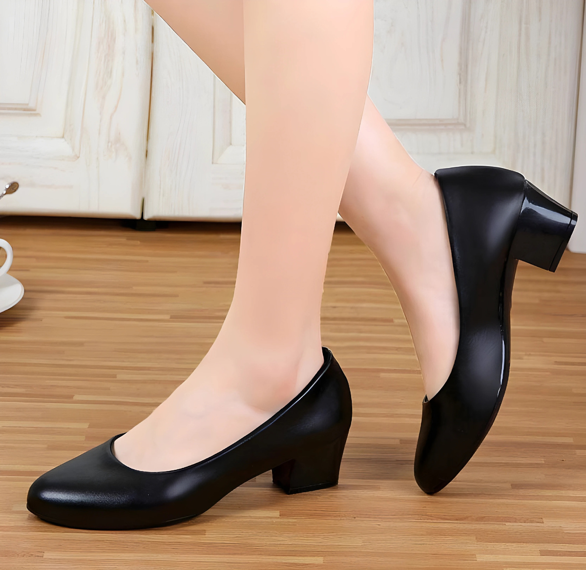 Чёрные туфли на удобном каблуке 3-5 см — это как надёжный друг, который никогда не даст промашку. Их можно смело надевать и с деловым костюмом на встречу, и с нарядным платьем на праздник. В отличие от высоких шпилек, в них можно провести активный день без боли в ногах и спине.