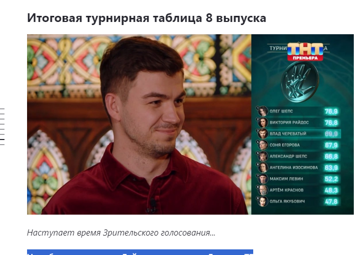 Как выглядит Турнирная таблица после Зрительского голосования: