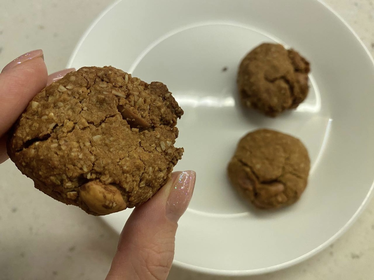 В конце статьи еще 3 вкусняшки без глютена🧇 Подписывайся, каждый день новый рецепт❤️ Все рецепты в подборках «ПП завтраки», «Обеды и ужины», «Без глютена», «ПП десерты» Ингредиенты: 120 гр овсянки или овсяной муки 90 гр арахисовой пасты 30 гр арахиса 3 ст.л. сиропа топинамбура 1.Овсянку мелю в муку. 2.К овсянке добавляю 90 гр арахисовой пасты. У меня 70% миндальной пасты, 30% арахисовой. Мне нужно было доиспользовать миндальную, срок годности кончался. 3.Перемешиваю. 4.Добавляю 3 ст.л. сиропа топинамбура.Перемешиваю. 5.Добавляю 30 гр арахиса. У меня вымоченный и жареный. Перемешиваю. 6.Катаю маленькие печеньки. Тесто не липнет к рукам. 7.В духовку на 15 минут при 180 градусах. Приятного аппетита 🫶 Сейчас я всеми силами стараюсь выполнить условия подключения монетизации на Дзене, чтобы вставить себе зубы, поэтому безумно рада каждому лайку, комментарию(хоть 🌸) и подписке.