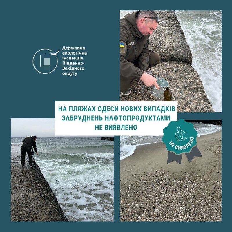В Одесской области государственные инспекторы провели обследование пляжей на предмет новых случаев заражения нефтепродуктами, но никаких следов мазута не обнаружили.