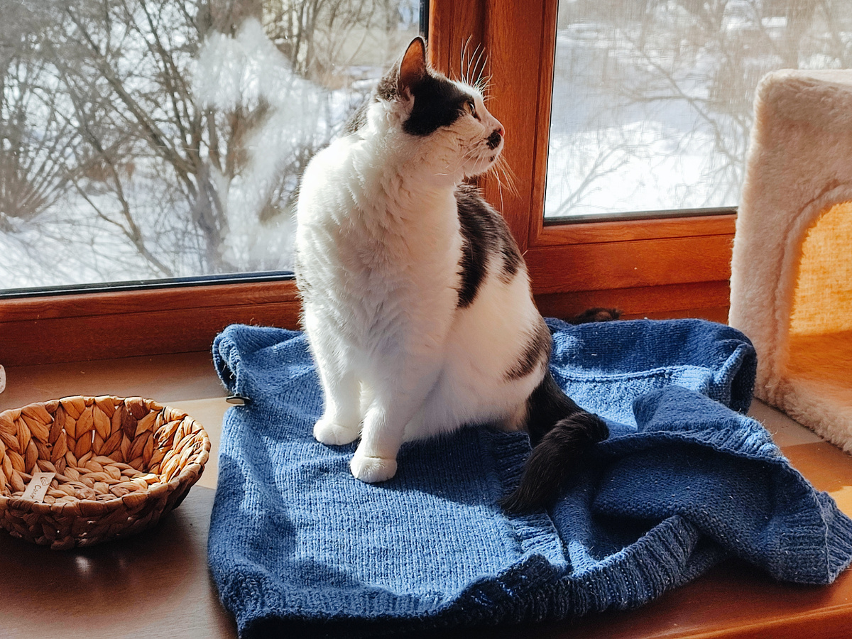 За окном весна. Ноль градусов и солнце. Но очень сильный ветер и снега столько, что соседи утром с лопатой дорожки расчищали. Я вчера выбегала за молоком и теперь до понедельника из дома ни ногой. Лечусь. Кардиган, отложенный до лучших времён, продолжает "расти". Видимо лучшие времена именно сейчас) Довязала планку с петлями, выбрала и пришила пуговицы. Выбирали с Мартышей. Как без неё?) Мартышенька выбрала кокосовую пуговицу. Еле отобрала)) Я склонялась к двум вариантам. Как я рада, что в прошлом году купила на ВБ пару "вёдер" пуговиц. По-моему полтора килограмма)) Как они меня сейчас выручают. Десяток пуговиц стоит столько, сколько я заплатила за эти вёдра. И уже окупила полностью эту покупку. Пуговицы насыпаны были на вес, но сделав два заказа, я собрала много комплектов одинаковых пуговиц, которые сейчас активно использую. Всё-таки остановилась на пуговицах под джинсу. Осталось связать рукава. После ВТО, я думаю, будет смотреться круто. В данном случае крутизна в лаконичности