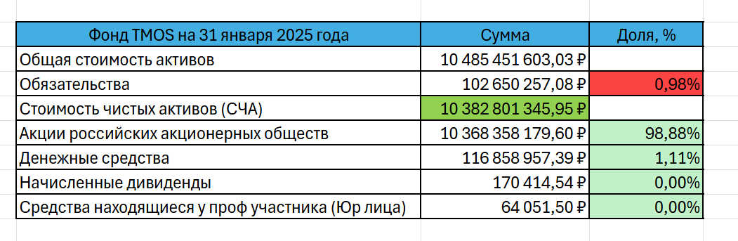 Отчётность фонда на официальном сайте. Последний отчёт от 31.01.2025