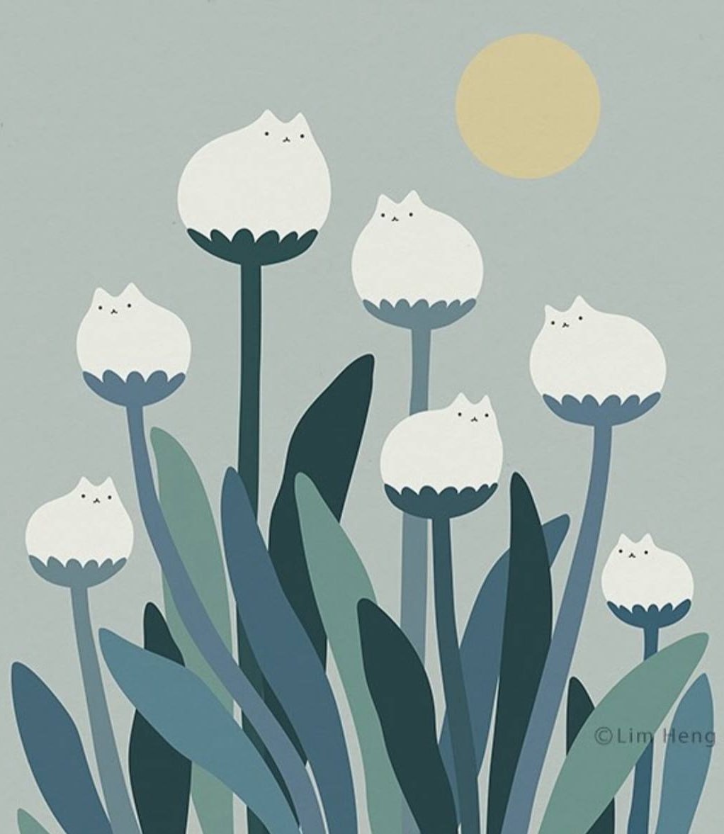 Слов сегодня будет очень мало. Герои рассказа, вернее показа - стилизованные коты художника из Малайзии Лим Хенг Сви. Своей целью художник ставит нашу с вами улыбку, радость, хорошее настроение. А кто лучше всего справляется с этой задачей? Конечно, коты! Свои рисунки художник объединяет в темы. Например: "Котик-цветик". Цветик - в значении "растение". В оригинале это звучит как Cat and Plant. Plant переводится как растение. Но "кот и растение" - это не складно. Мне кажется, лучше раздел назвать "Котик - цветик". Кот-мухомор тоже подходит под категорию растительности. Coffee cat - думаю, здесь всё понятно, перевожу выражение как "кофе с котом". Если есть кофе с котом, почему бы не быть кото-мороженому? Есть у Лим Хенг Сви большая серия пейзажных котов. Я бы их разделила на несколько циклов. Сначала - горные коты. Не котики! А коты - морские! В этой серии я выбрала три рисунка. Очень понравились картинки, которые можно объединить в цикл кото-любовь. Последнюю картинку наз