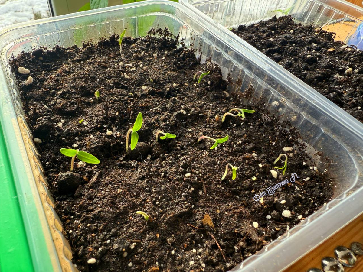 Век живи, век учись - пословица прямо для меня. Вроде сажаешь уже все не первый год, а всегда есть чему поучиться у опытных садоводов🧑🌾. Всходы томатов, перца и остальных культур, чаще всего появляются ночью. Поэтому, пропустить такой важный момент нельзя. Всегда проверяйте с вечера посадки и если обнаружите петельки сеянцев, сразу уберите пленку или стекло, чтобы не допустить полегания сеянцев. Придавленные пленкой, они долго будут выпрямляться, что может замедлить развитие рассады. Если сеянцы появились с утра, ставим емкость на хорошо освещаемый подоконник. 🔷 Частая ошибка, которую совершают все начинающие садоводы - это выставление молодой рассады на холодные подоконники. Какие последствия ожидают рассаду? Она может остановиться в росте, а если еще и чрезмерно переувлажнить землю, здравствуй «черная ножка». Чтобы избежать этого, опытные садоводы рекомендуют положить кусок пенопласта, картона или какую-нибудь толстую ткань на подоконник. Лучший вариант - это специальный коврик с