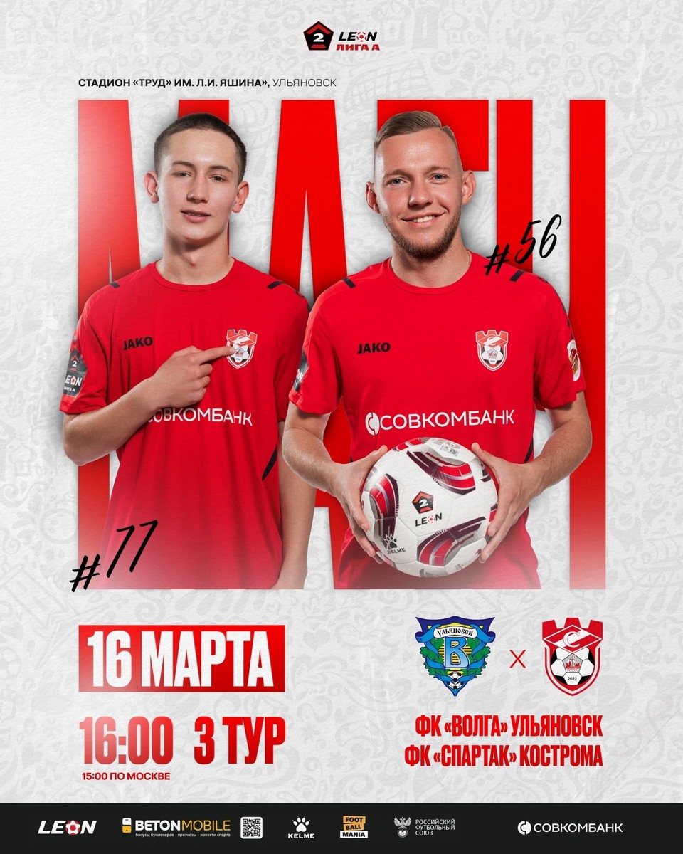 «Спартак» VS «Волга»: костромичи сыграют выездной матч в Ульяновске