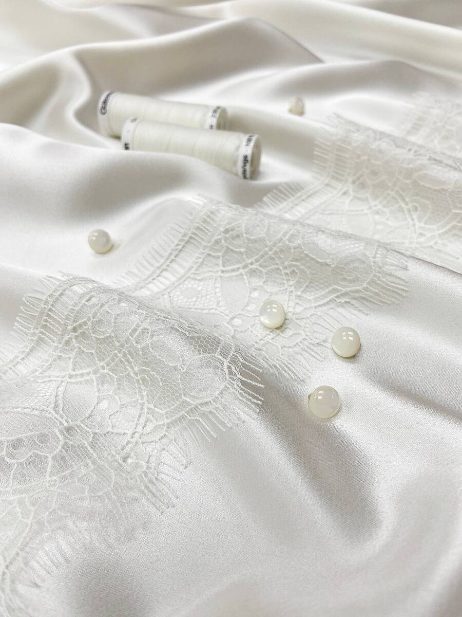 Изящное кружево, жемчужные пуговицы на ножке и нитки Gutermann.