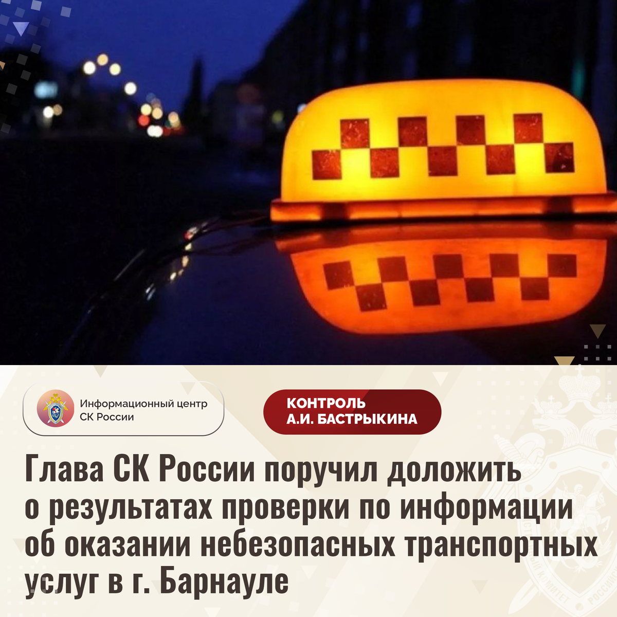 Глава СК России поручил доложить о результатах проверки по информации об оказании небезопасных транспортных услуг в г. Барнауле В СМИ сообщается, что в марте текущего года жительница города Барнаула Алтайского края обратилась в службу такси для перевозки ее 12-летней дочери в школу города Новоалтайска, после чего произвела оплату по указанным в приложении реквизитам водителя. Однако во время поездки мужчина обнаружил, что денежные средства поступили на его заблокированную карту, и потребовал по телефону от матери перевести дополнительную сумму на другой счет, угрожая не выпустить девочку из автомобиля. Получив отказ, он высадил ребенка из салона, не доставив по месту назначения. В СУ СК России по Алтайскому краю по данному факту организована процессуальная проверка. Председатель Следственного комитета Российской Федерации Александр Иванович Бастрыкин поручил руководителю СУ СК России по Алтайскому краю Игорю Владимировичу Колесниченко доложить об установленных в ходе первоначальных пр