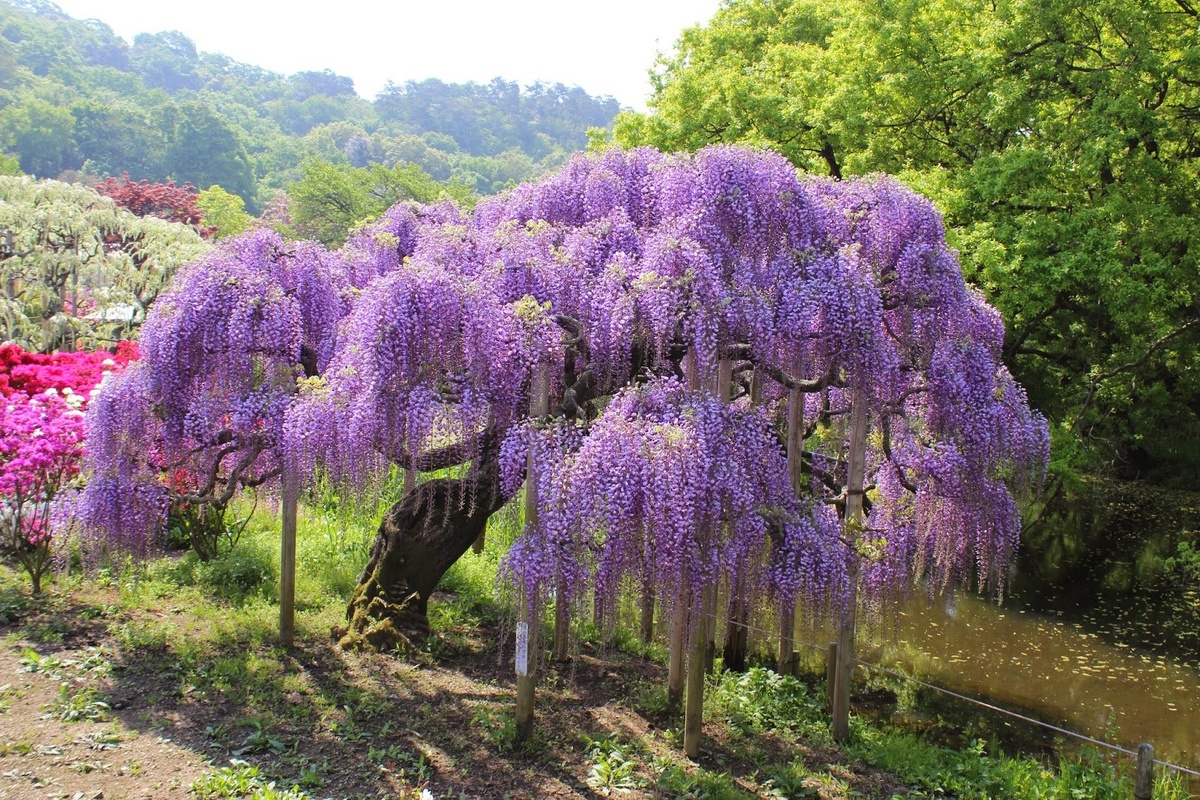 Японская глициния склонна к более пышному и продолжительному цветению. Соцветия, как правило, крупнее и могут иметь разнообразную окраску: от белой до пурпурно-розовой. Среди популярных сортов: