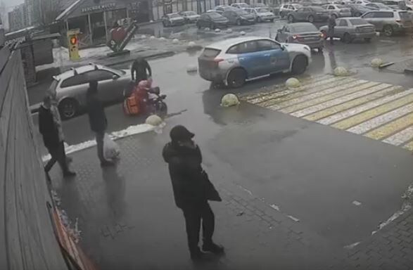 «Ищем свидетелей, а точнее водителя «Вольво», который не только нанес курьеру телесные повреждения, но и совершил ряд нарушений ПДД, едва не сбив пешеходов», – пишут в соцсетях.