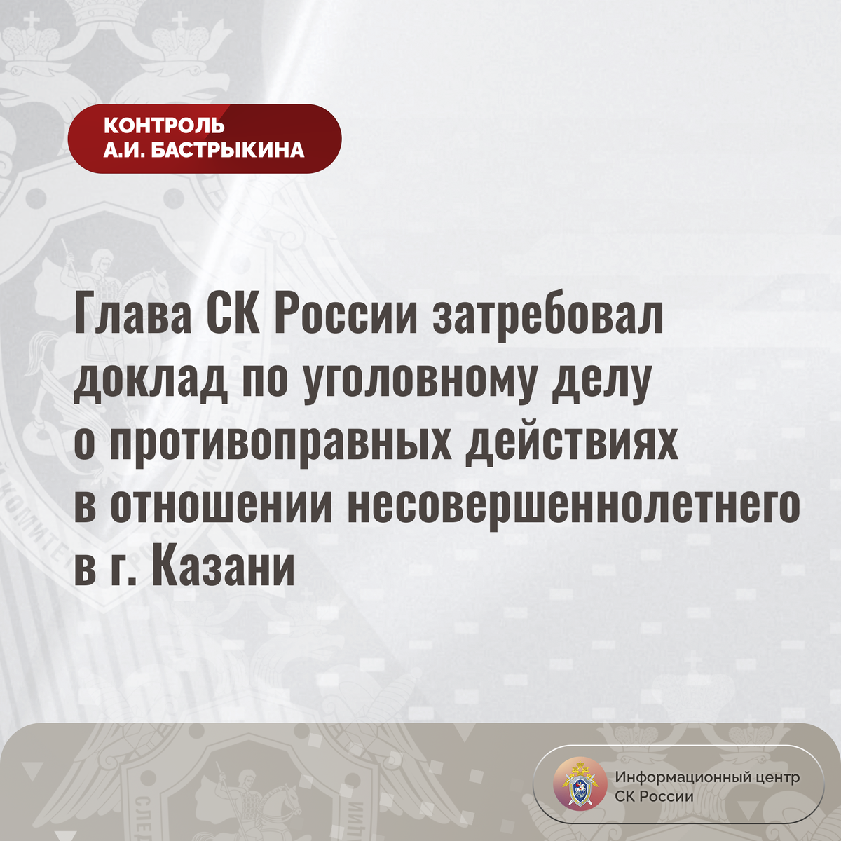 Глава СК России затребовал доклад по уголовному делу о противоправных действиях в отношении несовершеннолетнего в г. Казани