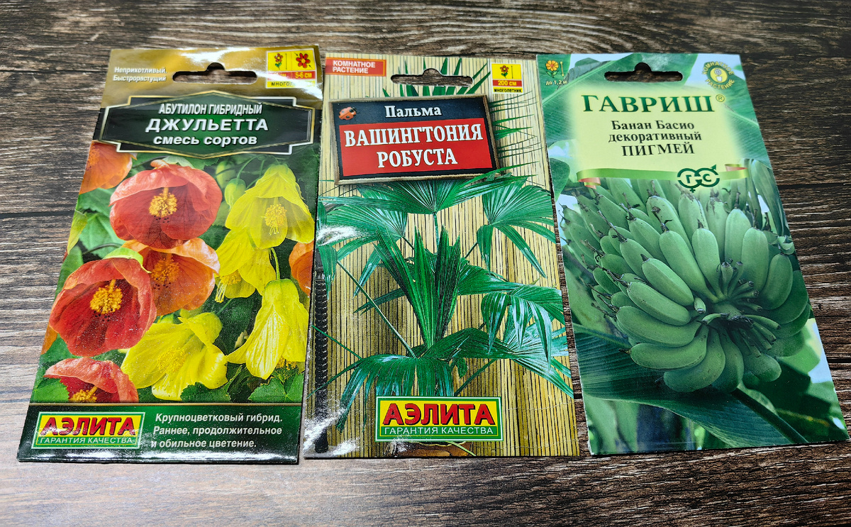 В этом году я пробую новое - выращиваю всякие неожиданные растения из семян. Первыми я заказала вот эту троицу вместе с семенами огородных культур. Все по-честному замочила, высадила на греющий коврик. Дело было аж 15 февраля. Помимо этих у меня были еще семена лантаны и маракуйи. Все стояло грелось, но на днях проросло только одно семечко вашингтонии из посеянных пяти культур. Ни абутилон, ни банан признаков жизни не подают. Сейчас это вот такой зеленый пик в несколько сантиметров ростом)) Даже интересно как она будет расти дальше. Затем на сайте Адениум Дома я заказала еще несколько разных культур. Особенно мне хотелось вырастить Бругмансии. Ну и я назаказывала их аж пять вариантов, поскольку там всего по два семечка и не факт что из десятка хоть что-то взойдет. Еще приобрела интересный бамбук, красивый банан, вашингтонию нитчатую и три сорта олеандров. Все это замачивалось частично и высаживалось 6-7 марта. Основная масса посевов сидит без движения, а вот олеандры уже выскочили! Их