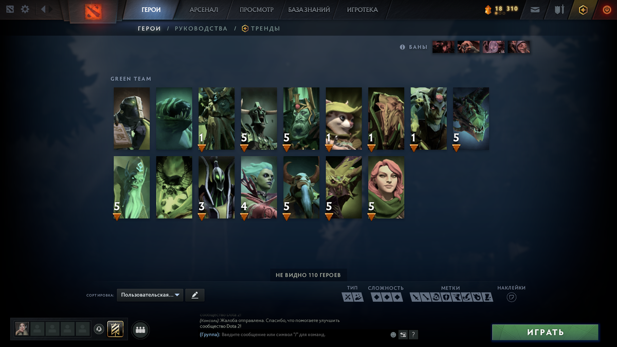 Да, я играю в зеленую доту. Что это такое? Сейчас расскажу с удовольствием. Главное стараться вникать во всё внимательно. Не упустить цветовое решение и визуальный дзен доты. Я проведу вас по этому спектру в мир красок и оттенков. Чем прекрасна дота? Цветовым балансом. Например герои в доте имеют преобладающие цвета в своих стилях. И если становится скучно разделять героев только по характеристикам (сила/ловкость/интеллект) я перехожу на «цветную» доту. Можно вспомнить свои любимые цвета и выбрать какой-то один. Серый к сожалению не популярный цвет поэтому я остановилась на зеленом. И больше 15 героев подходящих в данную категорию. Тем более, что я играю почти на половине героев данной подборки. А также можно найти себе героя на любую роль: мид - Вайпер, Профетка, керри - ВК, Дуза, тройка - Некр, Тайб, сапы - Трент, Белка, Фура. В общем выбор достаточный. Такая смена пула позволяет визуально сконцентрироваться на внутреннем умиротворении. Очень рекомендую попробовать разнообразить