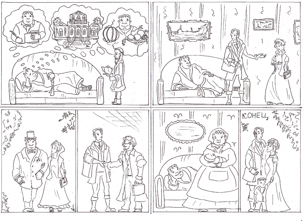 В романе "Обломов" разворачивается картина обыденной жизни Ильи Ильича Обломова, представителя российского дворянства, что обеспечивает ему безбедное существование. Обломов характеризуется апатичным отношением к жизни, погрязнув в лени настолько, что большинство дел он выполняет, не покидая постели. Однажды утром он получает письмо из Обломовки, сообщающее о плачевном финансовом положении имения и требующее его личного вмешательства. Однако Обломову трудно даже выйти из комнаты, не говоря уже о путешествии в деревню. Он предается воспоминаниям о счастливой юности, проведенной в Обломовке, где его оберегали от забот и учебы. Его друг, Андрей Штольц, полная противоположность Обломову, воспитанный в строгости и трудолюбии. Штольц пытается расшевелить Обломова, знакомя его с новыми людьми, в том числе с Ольгой. Обломов влюбляется, но их отношения терпят крах из-за его апатии и нерешительности. Обломова обманывают недобросовестные приятели, но Штольц помогает ему. Затем злоумышленники шант