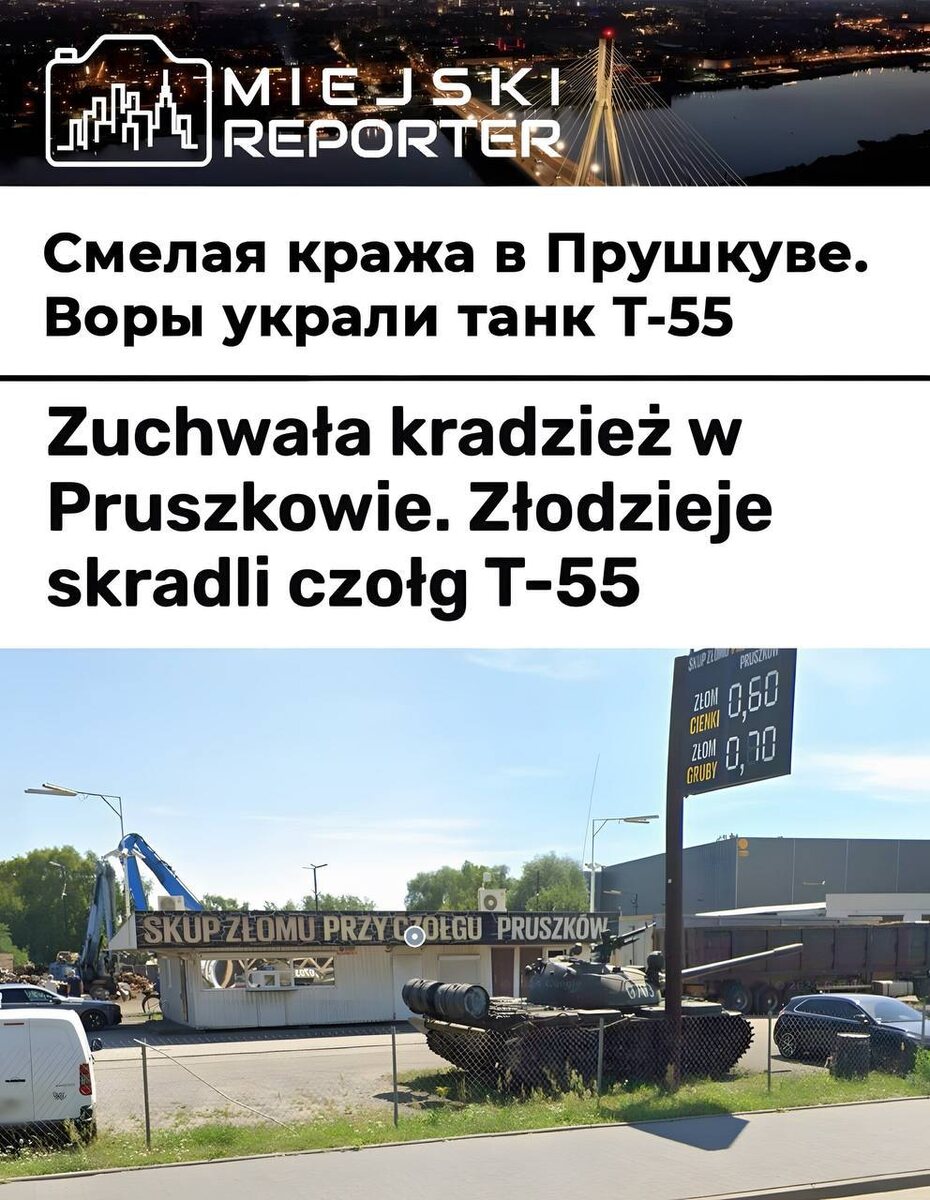 Польша озадачена необычным происшествием: из пункта приема металлолома исчез танк! Не какой-нибудь игрушечный, а настоящий боевой, внушительных размеров. История, больше похожая на сюжет шпионского боевика, взбудоражила общественность и вызвала шквал спекуляций в сети. Пропажа танка обнаружилась во время обычной инвентаризации. Представители пункта приема металлолома, естественно, были шокированы. Танк, объект, невозможно незаметно вынести со двора, просто исчез. Полиция начала расследование, но пока безрезультатно. Отсутствуют свидетели, записи с камер видеонаблюдения оказались либо повреждены, либо не зафиксировали ничего подозрительного. Версий, разумеется, множество. От банальной кражи (хотя и не совсем понятно, как могли вывезти столь габаритный предмет) до более экзотических предположений о причастности коллекционеров военной техники или даже… шутников с весьма специфическим чувством юмора. Некоторые эксперты предполагают, что танк мог быть вывезен ночью, при помощи специальн