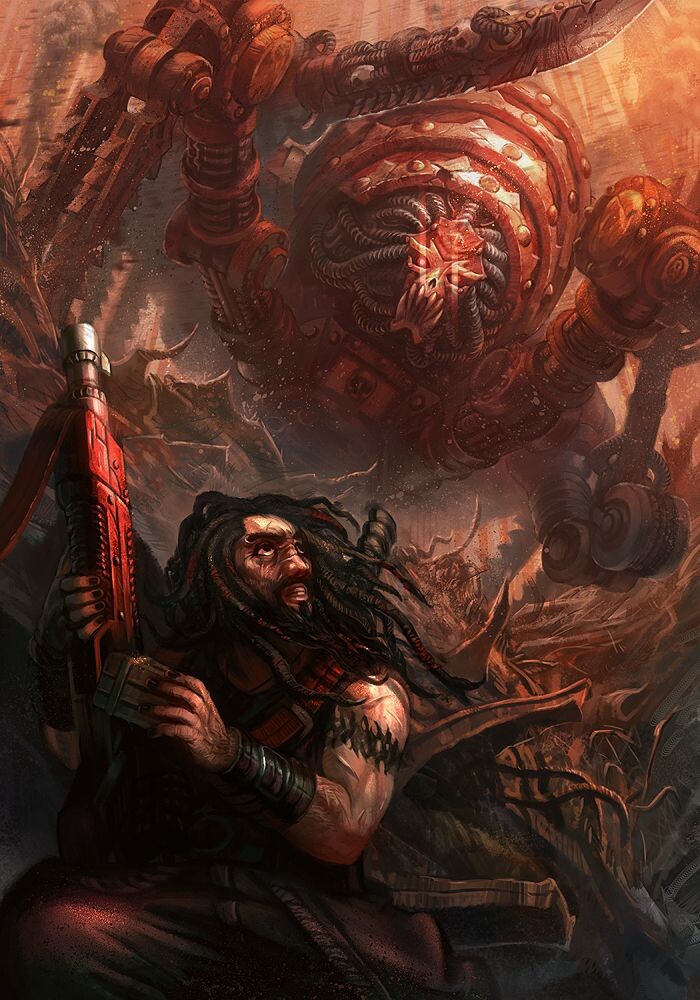 Доброго времени ,дорогие читатели!Сегодня мы начнем серию знакомства с орудиями хаоса. Врага ,нужно знать в лицо...ну или в металл если это техника. Конечно же мы начнем с самых кровожадных вундервафель Кхорна-Бога Войны. Кровавые забойщики, также известные как кровавые мясники, представляют собой одни из самых опасных и распространённых демонических машин, связанных с культом Кхорна. Эти огромные, наполненные кровью механизмы, созданные из сверкающей красной меди и чёрного железа, являются воплощением жестокости и разрушения. Они питаются кровью и наполняются ненавистью, что заставляет их постоянно двигаться и разрушать всё вокруг в состоянии едва сдерживаемой ярости. Под их закалёнными металлическими панцирями в громовой какофонии насилия бьются демонические сердца, а каждая новая жертва становится подношением их покровителю. Кровавые забойщики не имеют какой-либо цели, кроме как охотиться и поглощать кровь своих жертв. Эти машины, напоминающие медно-керамитовых клещей,