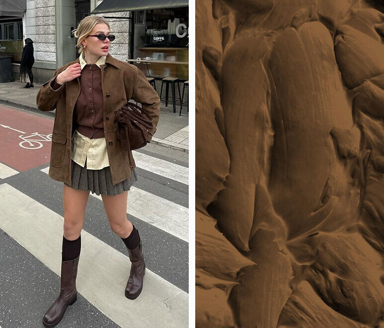 Mocha Mousse — это насыщенный, теплый оттенок коричневого, который сочетает в себе нотки шоколада и легкие карамельные оттенки, создает ощущение уюта и спокойствия. Стилист Есения Арсентьева уверена, Mocha Mousse — универсальный цвет, не слишком яркий, но и не слишком темный. И это делает его идеальной основой для стильных сочетаний. Цвет Mocha Mousse — находка для тех, кто любит универсальность и элегантность. Нейтральный и теплый подтон делают его идеальным фоном для создания разнообразных образов. Mocha Mousse легко сочетается и с теплыми, и с холодными оттенками. В зависимости от освещения, он может выглядеть чуть приглушенным или, наоборот, насыщенным. Вы можете идеально дополнить трендовый цвет мягкими пастельными тонами, яркими акцентными вроде насыщенного красного или природными. Классические сочетания с черным и белым тоже беспроигрышны в любой ситуации. Приглушенный бордовый в сочетании с Mocha Mousse придает образу выразительности. Благородный микс отлично подойдет для вечер