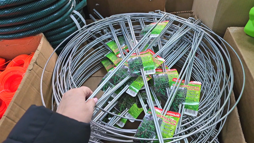 Давайте смотреть ассортимент и новинки. Смотрите опять какие привезли нам кустодержатели круглые диаметр 400 мм высота 700 мм .Три диаметра именно этот 500 мм диаметр высота 700 галочка стоит как раз. Каждый год привозят и каждый год их все разбирают 149 руб Опрыскиватели 3 л 220 руб Шланги поливочные армированные трёхслойные ПВХ 20 м 693 руб Ящик балконный 177 руб белый и коричневый 60 на 20 и 12 см 9,5 л Набор для рассады это вот новинка недавно привезли здесь стаканчики высокие хорошие 202 руб А до этого были вот такие стаканчики низкие Мне кажется ниже чем те тоже 10 штук с поддоном Так сколько они стоят 148 руб Суповой набор лососёвых рыб смотрите какие наборы Какие шикарные наборы кто какую часть любит от рыбы. Я люблю голову 172 руб Огурцы свежие .Хорошего качества. 87 руб стоят 203 руб стоит яйцо 30 штук Колбаса Модерн 591 руб стоит на дегустации я ее пробовала она мне не понравилась я уже покупала Какая рыбка лежит горбуша 696 руб так аппетитно выглядит Набор к пиву вот тако