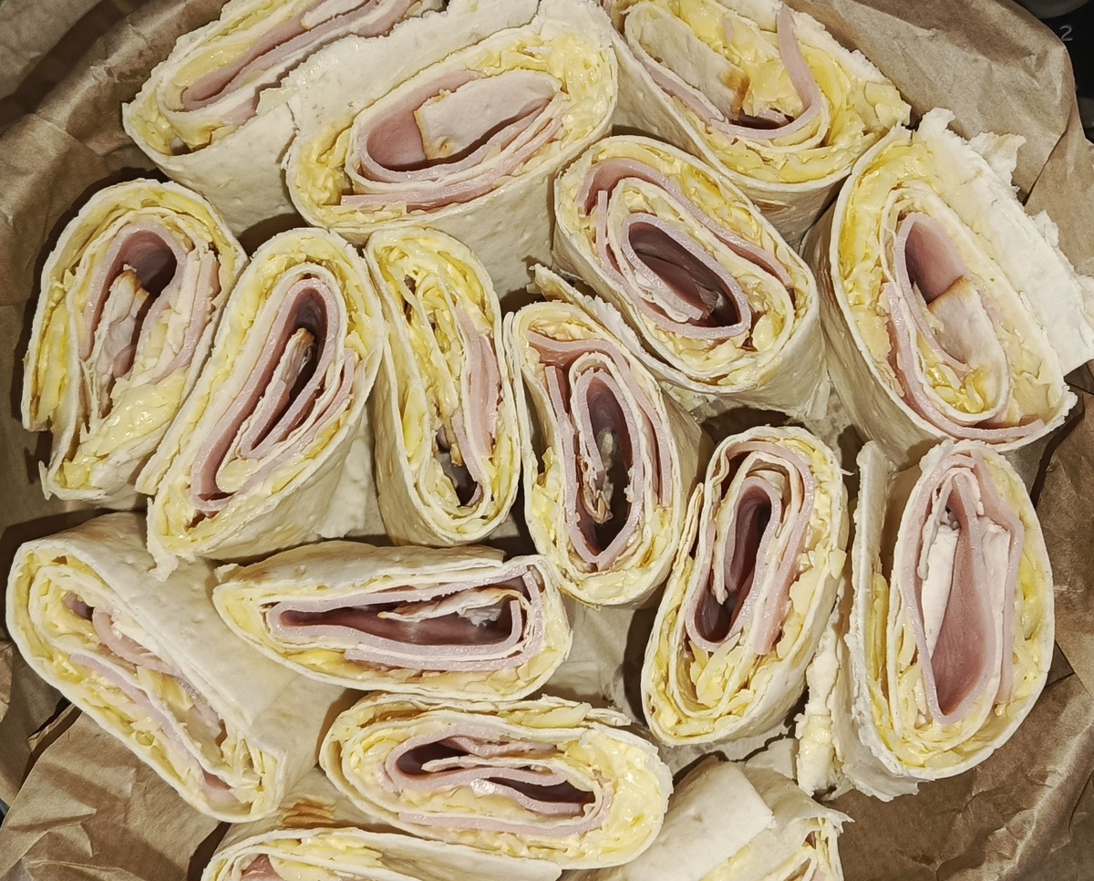 Лаваш вообще универсальное блюдо, один рулетов можно сколько видов сделать. Один из рецептов, который готовлю я. Готовится быстро, вкус отменный. Нам понадобится: Трем сыр на крупной терке, добавляем в него майонез и чеснок. С ветчиной все просто, хотите режьте кусочками, хотите кубиками, хотите соломкой. Хоть на терке, вкус от этого не меняется. Ингредиенты готовые, мы готовы, собираем рулет. Растилаем лаваш Намызываем его массой из сыра, чеснока и майонеза Выкладываем ветчину. У меня в тот раз в таком виде😁 Сворачиваем рулет Режем на кусочки, я резала примерно по высоте формы для запекания. Форму застелила пергаментом, чтоб меньше мыть😁. Ставим в разогретую духовку минут на 5-7. Чтоб сыр расплавился. Дальше достаем из духовки(духовку можно выключить), посыпаем тертым сыром. Можно оставить на столе, можно поставить в духовку, чтоб верхний сыр расплавился. Как не много под остынет, можно переложить на тарелку. Потому что плавлены сыр вытекает, может прилипнуть к пергаменту. Все,