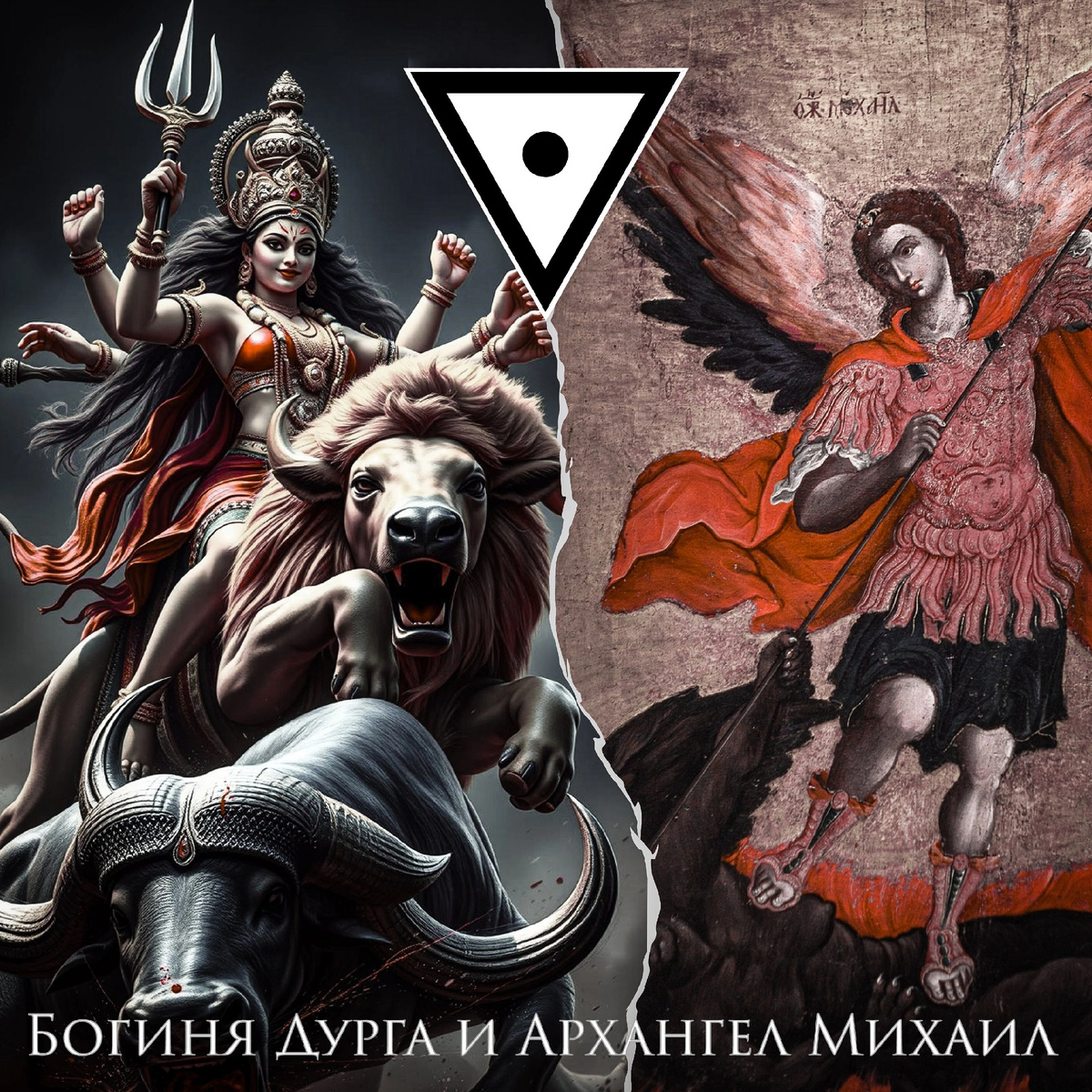 С древнейших времён человечество сохраняет архетипичные образы, которые, меняя формы, продолжают воплощать универсальные идеи борьбы света с тьмой. Одним из таких символов является фигура божественного воина, побеждающего силы хаоса. В индийской традиции это богиня Дурга, восседающая на льве и пронзающая трезубцем (тришулой) демона-быка Махишасуру. В христианстве — Архангел Михаил, поражающий копьём дракона или змея. На первый взгляд, эти образы принадлежат разным культурам, но их глубинное сходство указывает на общий мифологический корень.