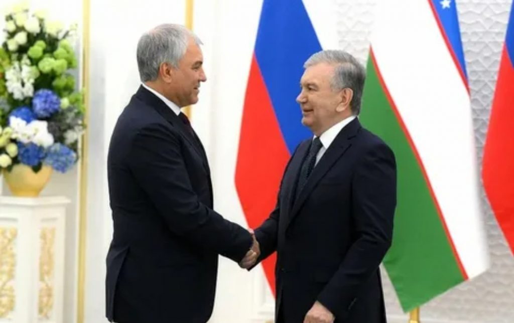 Вячеслав Володин передал Шавкату Мирзиёеву слова приветствия от Владимира Путина. Во время официального визита в Узбекистан председатель Государственной Думы Вячеслав Володин встретился с президентом страны Шавкатом Мирзиёевым, передав ему приветствие и наилучшие пожелания от Владимира Путина. Володин подчеркнул, что российско-узбекское сотрудничество является стратегическим диалогом, учитывающим национальные интересы, взаимное уважение к традиционным ценностям, общей истории и культуре. Стороны обсудили перспективы расширения межпарламентского взаимодействия, в том числе на международных площадках. Володин подчеркнул, что договоренности между лидерами России и Узбекистана требуют от парламентариев активной работы по законодательному обеспечению принятых решений. Председатель Госдумы выразил благодарность Мирзиёеву за поддержку углубления связей между парламентами двух стран. Также Володин отметил значительный вклад президента Узбекистана в сохранение памяти о подвиге советского народа