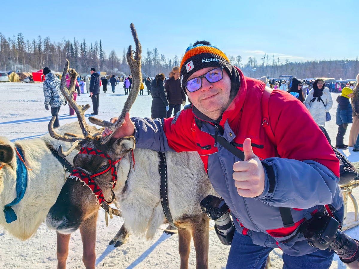 Из серии "Сказал Свете, что еду на завод...", а сам сегодня прекрасно провожу время на празднике оленеводов в селе Хатыстыр, что в Якутии. Скучать некогда, кругом одни олени, в хорошем смысле, естественно. В начале ты от них получаешь визуальный релакс, потом на столе во всяческих блюдах, а получив хлеба, настает пора зрелищ - Оленьи гонки. Между прочим, главный приз - снегоход. Все это сопровождается массовыми гуляниями, танцами и песнями. Короче, очень атмосферный и познавательний праздник прямо на ледовой площадке озера Суоллах. Кочевые народы Севера с древних времен отмечали особые дни, связанные с изменениями в природе. Были и народные праздники, когда посещали священные родовые места, проводили обряды, угощали духов. Но День оленевода появился лишь в 1950-1960-е годы вместе с множеством других профессиональных праздников. И вот сейчас местные оленеводы продолжают многовековое дело своих предков, и все же дело это не простое, отдыхать тоже надо. Кстати, в Якутии на январь 2025 год