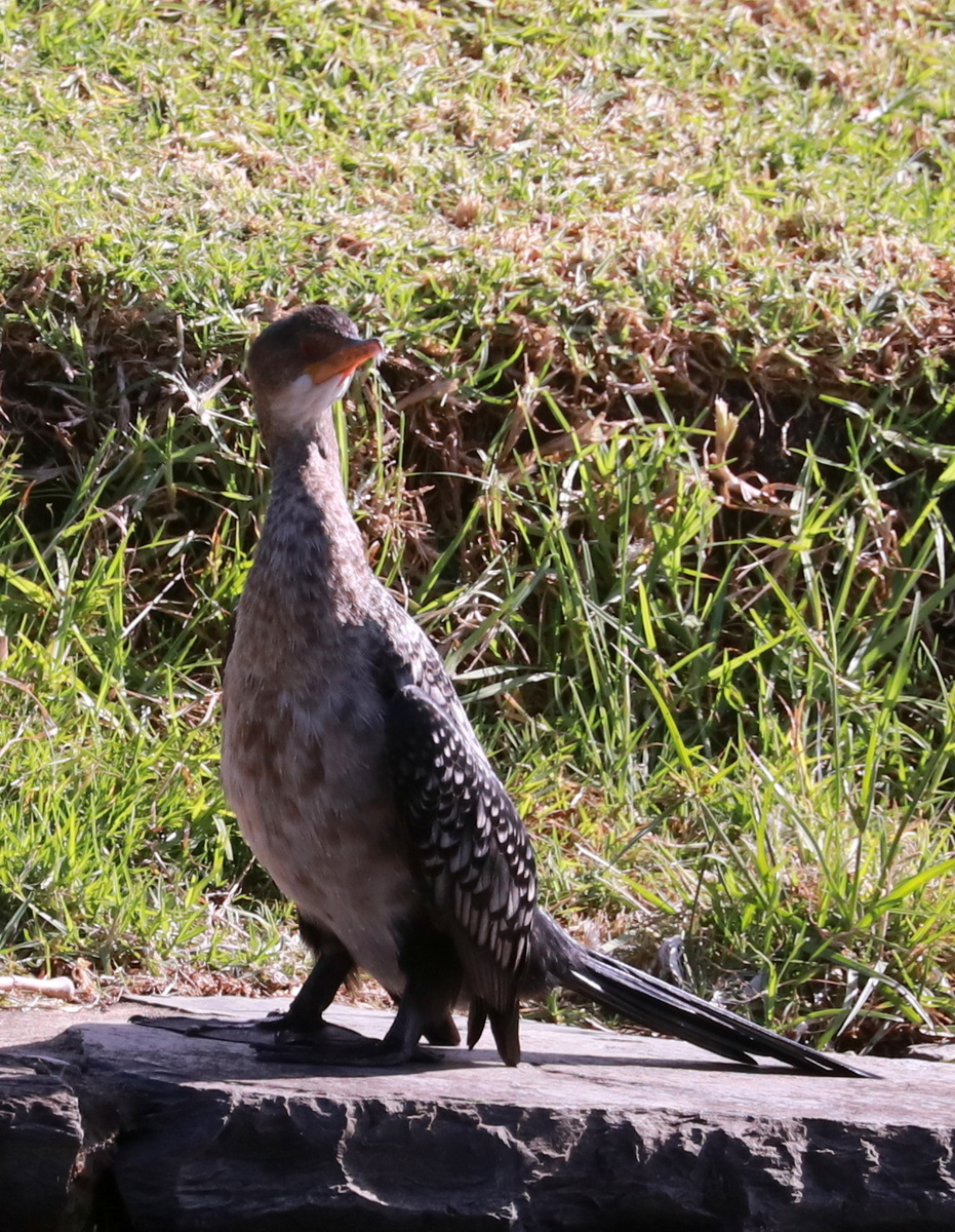 Небольшой баклан, предпочитающий держаться в тени тростника. Часто встречается в парках ЮАР