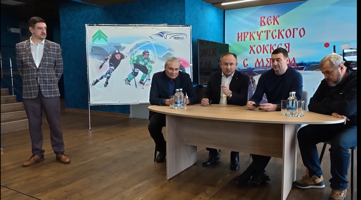 Прежде всего, это Сергей Мяус, который прибыл в Иркутск от ФХМР. Также за столом спикеров: министр спорта Иркутской области Павел Богатырев, председатель Правительства Иркутской области Константин Зайцев и его заместитель Георгий Кузьмин.