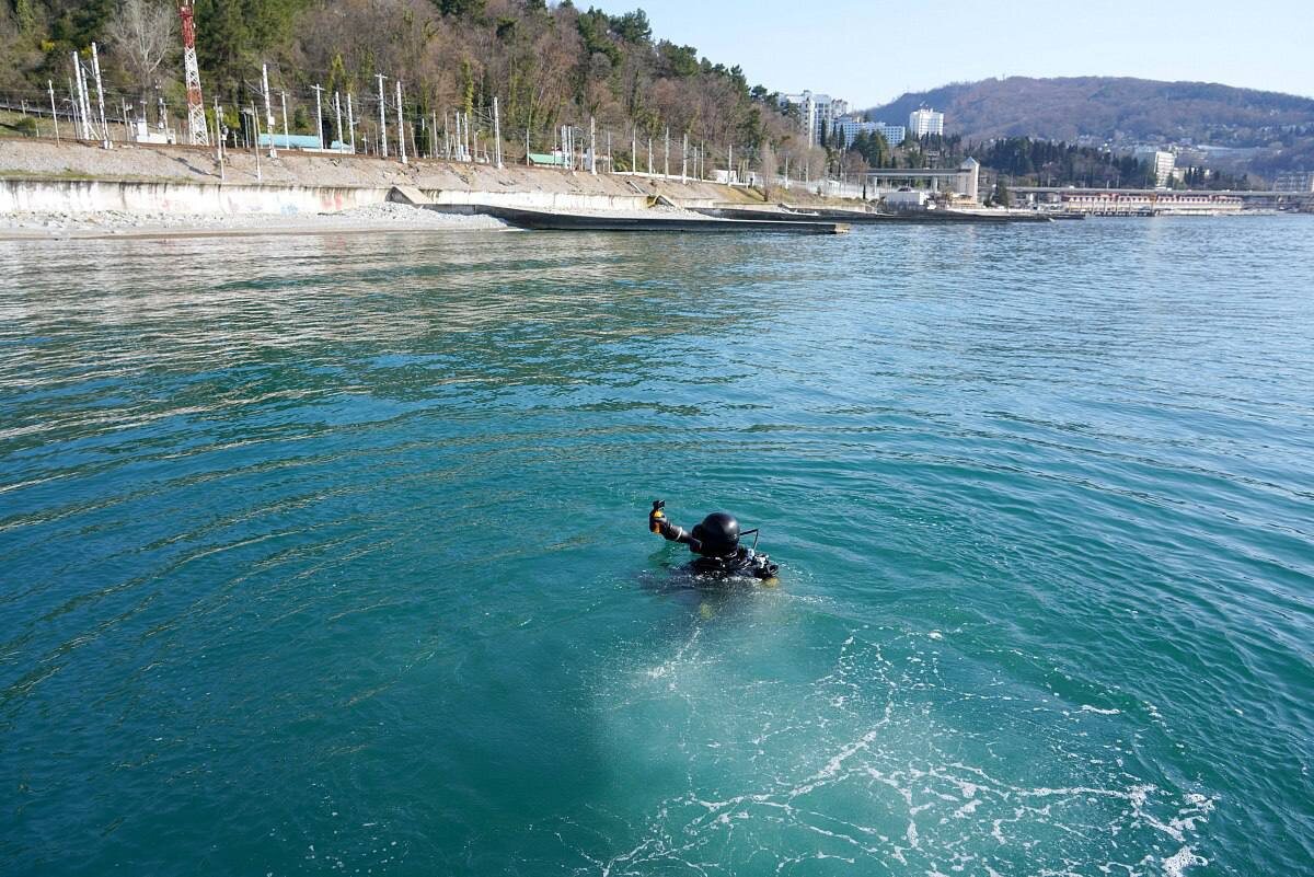 Водолазы обследовали акваторию Сочи, проверив зоны купания на расстоянии 50 метров от берега и до 15 метров в глубину.