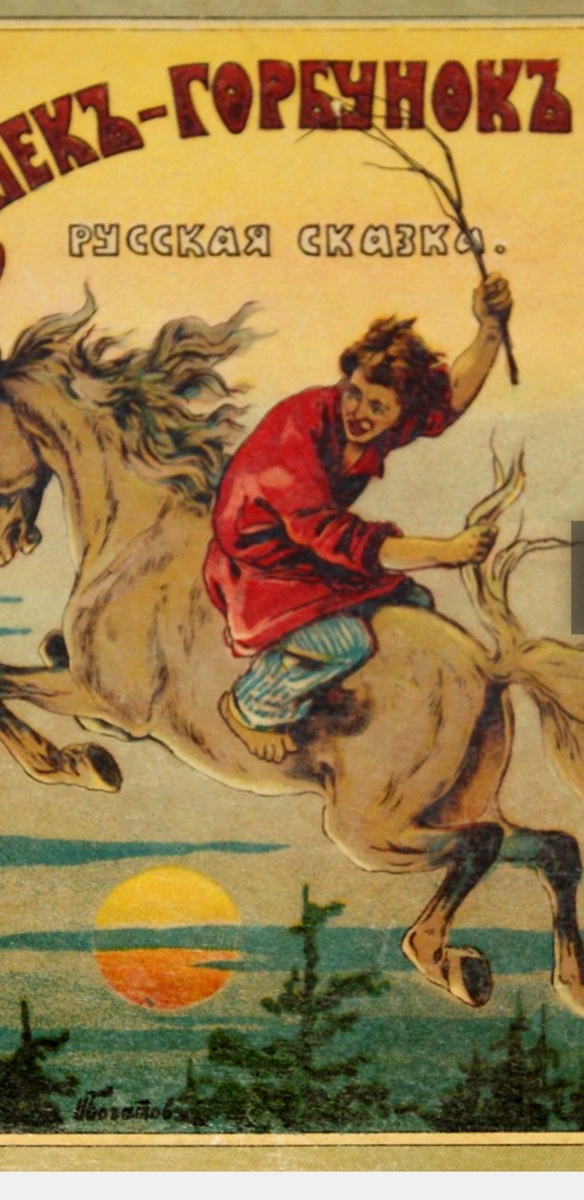 П.Ершов. Сказка "Конёк- горбунок". Написана в 1830 году. В начале сказки отец обращается к братьям: ночью кто-то неизвестный топчет пшеницу. Нужно сторожить. Старшие братья быть одни в поле ночью боятся и кое как выполняют наказ отца. Младший брат Иван привычно лежит на печке и не слушает уговоры братьев идти сторожить. Печка. Древний смысл сидения на ней в золе -магический: ввести в заблуждение злых духов. Печка - очаг, связывающий с духами предков.Легенды о шаманах, их быте гласят, что они были ленивы, малоподвижны, неопрятны, непричёсаны.Отказ умываться, стричься связан с древними обрядами посвящения. Печка - законное место Ивана-дурака. По просьбе отца, младший брат берётся за дело без страха, притом - бескорыстно, отец даёт ему только немного еды. Ночью он смело обходит всё поле, смотрит на небо и садится есть хлеб.С собой он взял только краюху хлеба. Еда им взята для задабривания покойников.Старшие же ходили с вилами и с топором. Прибегает кобылица. "Прыгнул к ней он на хребёт