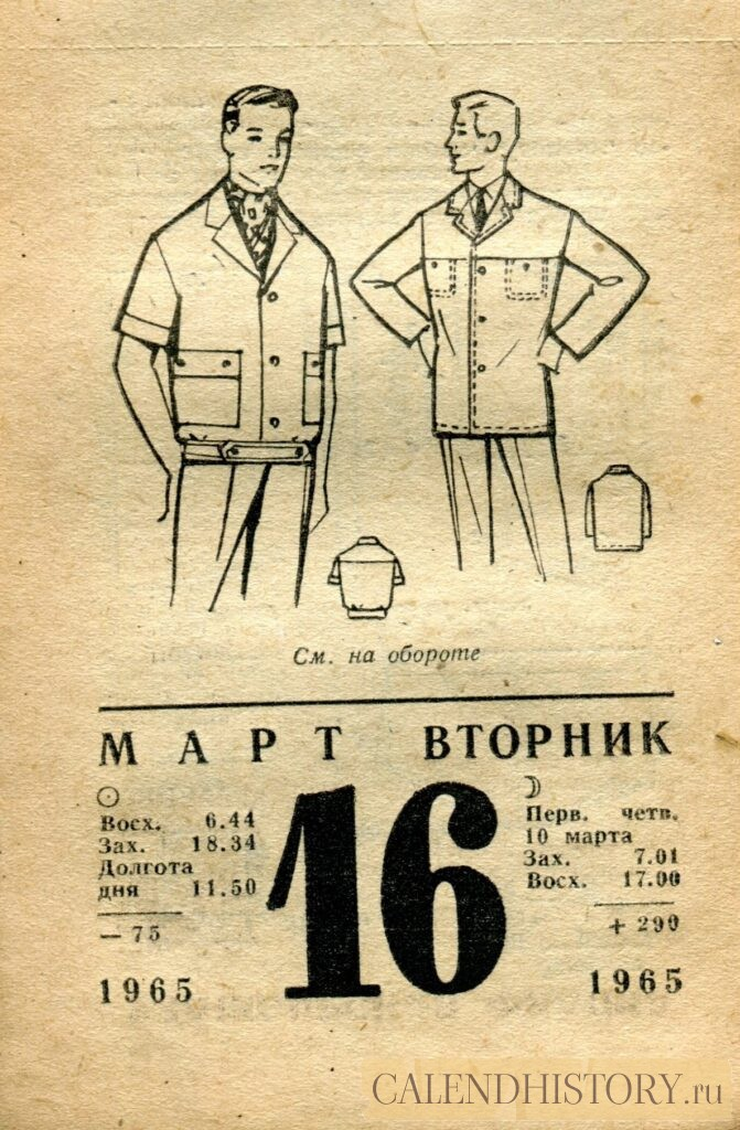 Итак, сегодня 16-го марта и у нас на календаре 1965-й год. Перед нами листок советского календаря для женщин.