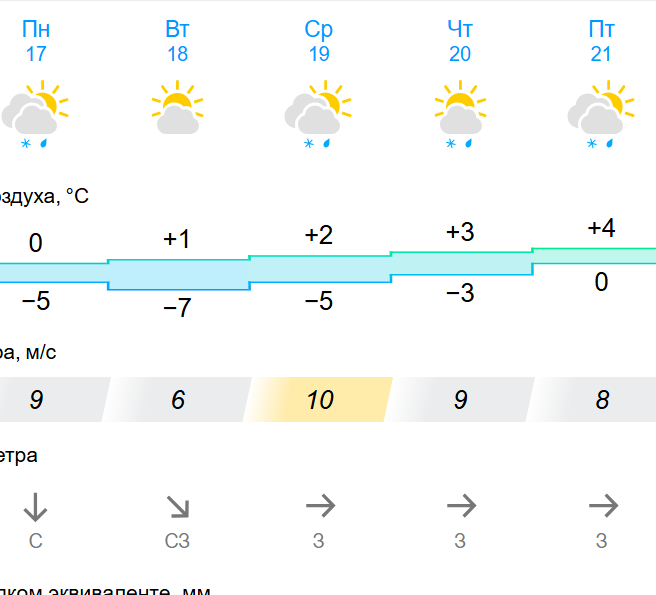 Конец недели пройдет в том же режиме. И на четверг, и на пятницу метеорологи прогнозируют преимущественно облачную погоду. Также выпадут небольшие осадки – снег с дождем. Ветер не изменит своего направления.