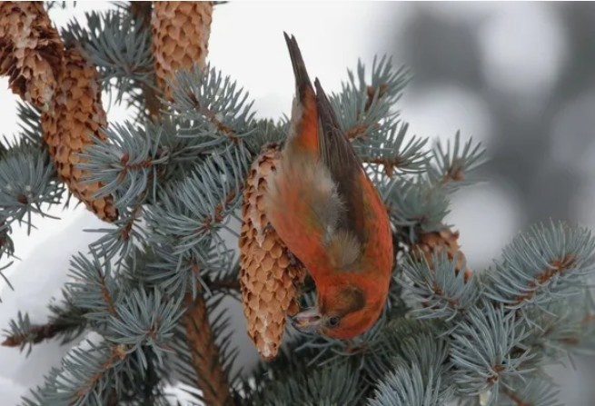 Март в тайге — пора особая. Вроде бы весна на носу, а по-настоящему тепла ещё нет. Особенно под густыми лапами старых кедров, где снег лежит будто в декабре. Лесник Матвей, привычный к любому времени года, скользил на своих охотничьих лыжах по заснеженному лесу. Работа у него такая — каждый день участок обходить, порядок проверять. Вышел на поляну — а там за ельником картина дивная открылась. Старые ели, как великаны, стоят, а на ветках — шишки, шишки, шишки! Крупные, тяжёлые, и так их много, что ветви под весом наклонились, будто поклониться кому собрались. Тишина в лесу такая, что слышно, как снежинки падают. Птицам ещё не до песен — холодно пока. Только иногда треснет где-нибудь сучок от мороза, да лыжи Матвея по снегу шуршат. Вдруг над тихим лесом пронёсся лёгкий ветерок, будто весна заглянула на минутку. И сразу над поляной появилась весёлая стайка птиц. Это были клесты — настоящие северные жители, которым никакие морозы не страшны! Заметив высокие ели, птички сразу облепили их ве