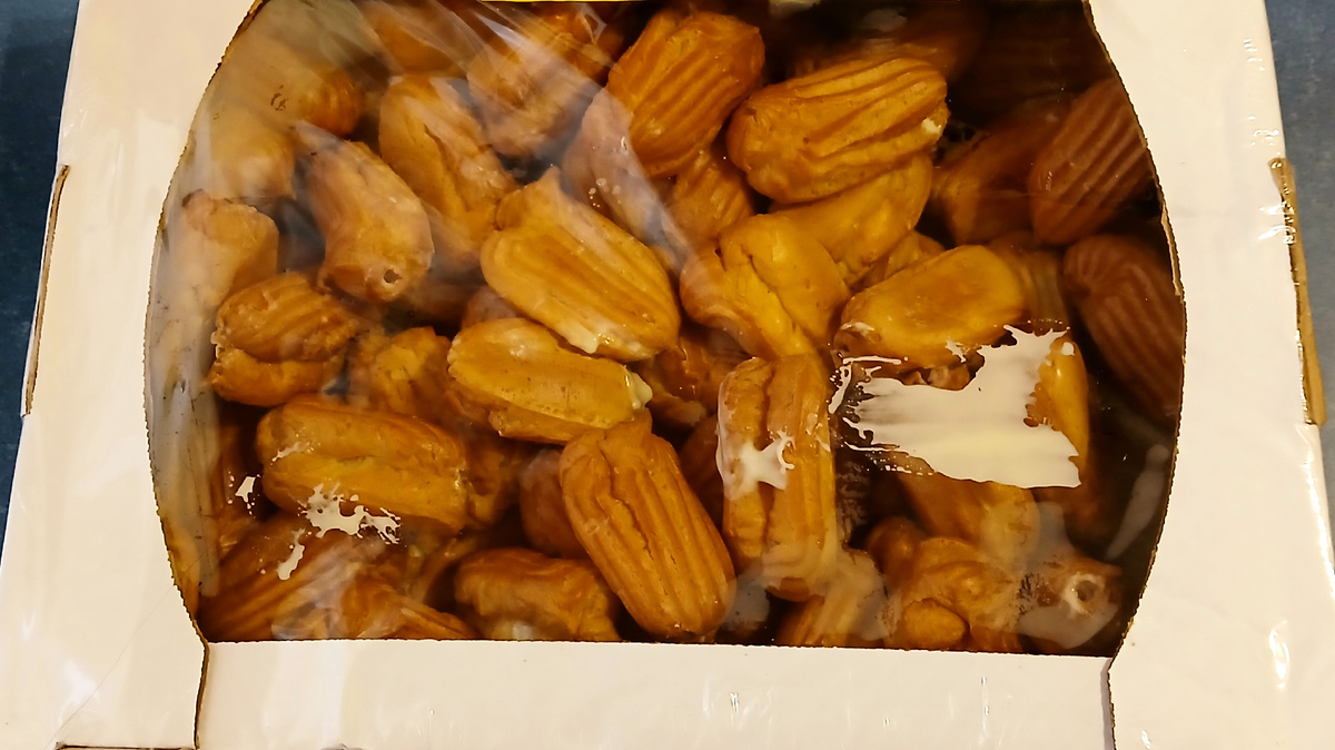 Главное правило экономии: не ходи голодная по магазинам! А если голодны и ты, и муж, то дело может вообще обернуться почти трагически. Не для вас, нет! Вы-то как раз будете довольны, сыты и счастливы, а для семейного бюджета, который рискует пойти по швам. Ехала голодная с больницы, захотел муж порадовать, встретить. Собрал только проснувшегося Трофимку, нашего младшего сына, и побежали они ко мне на остановку. А там магазинчики всякие-разные: кондитерский, рыбный, мясной, "Пятёрочка"... Ну как было устоять? Пошли в кондитерскую. Семья большая: четыре мужика и я. Поесть любим, без конца готовлю и что-нибудь к чаю пеку. Но есть то, что готовить не умею, а мои очень это любят и уважают. И это - заварные пирожные со сгущёнкой. Поэтому за ними мы бегаем как раз в эту замечательную кондитерскую, и если уж берём, то не особо мелочимся - сразу коробку. Справедливости ради стоит отметить, что пирожных в ней не так уж и много - всего 2 кг. И состав прекрасный - детям не страшно дать. Продавец