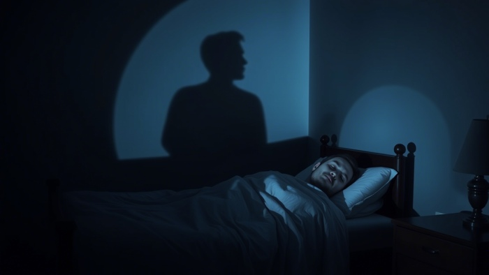 — Я почувствовал чьё-то присутствие. Без единого звука какая-то фигура вошла через дверь и прошла мимо нашей кровати. Она остановилась у изножья, словно изучая нас.