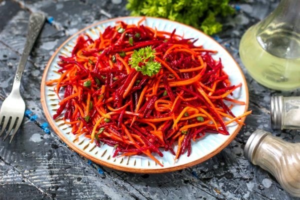 Салат, который помогает при запорах, должен быть богат клетчаткой, водой и натуральными стимуляторами пищеварения. Вот пример полезного рецепта: Подписывайтесь на канал и ставьте лайк 💚 Салат "Для легкости" Ингредиенты: - Свекла (сырая или вареная) — 1 шт. (богата клетчаткой и улучшает перистальтику). - Морковь — 1 шт. (источник клетчатки и витаминов). - Яблоко (зеленое) — 1 шт. (пектин стимулирует кишечник). - Чернослив — 5–6 шт. (натуральное слабительное). - Семена льна или чиа — 1 ст. л. (растительные волокна и омега-3). - Зелень (петрушка, укроп) — пучок. - Оливковое масло — 1 ст. л. (помогает усвоению клетчатки). - Лимонный сок — 1 ч. л. Приготовление: 1. Натрите свеклу, морковь и яблоко на крупной терке. 2. Чернослив залейте кипятком на 5 минут, затем мелко нарежьте. 3. Смешайте все ингредиенты, добавьте зелень, семена, масло и лимонный сок. 4. Подавайте свежим (не храните долго). Почему это работает: - Клетчатка из овощей и фруктов стимулирует работу кишечника. - Чернослив
