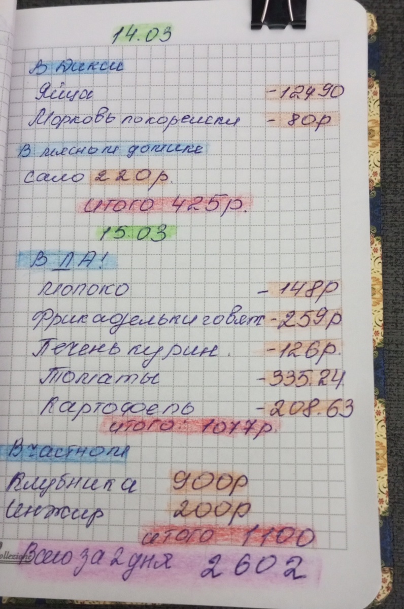 С блокнотом очень удобно считать, фото трат я показывала.