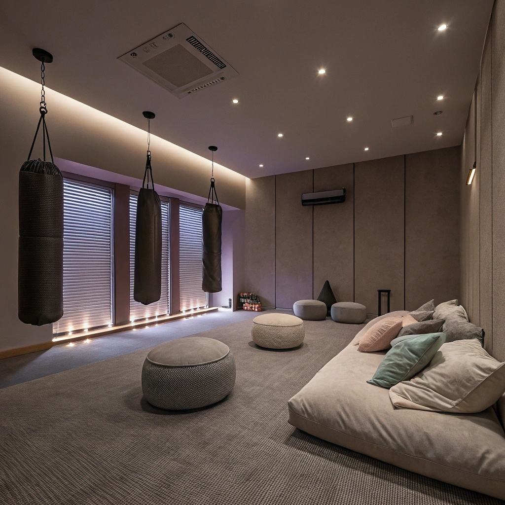 Если это комнаты для релакса, йоги, то здесь все достаточно безопасно: пуфики, коврики, пледы, подушки, и т.д. Ну и проигрыватель для релаксирующей музыки.