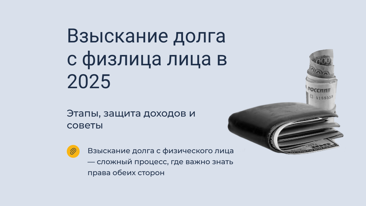 Взыскание долга с физического лица — сложный процесс, где важно знать права обеих сторон. В 2025 году не произошло кардинальных изменений в законодательстве, регулирующем взыскание долгов, однако сохраняются общие тенденции на усиление защиты прав должников и повышение прозрачности процедуры взыскания. Разберем основные этапы взыскания, защиту доходов должника и дадим советы обеим сторонам.