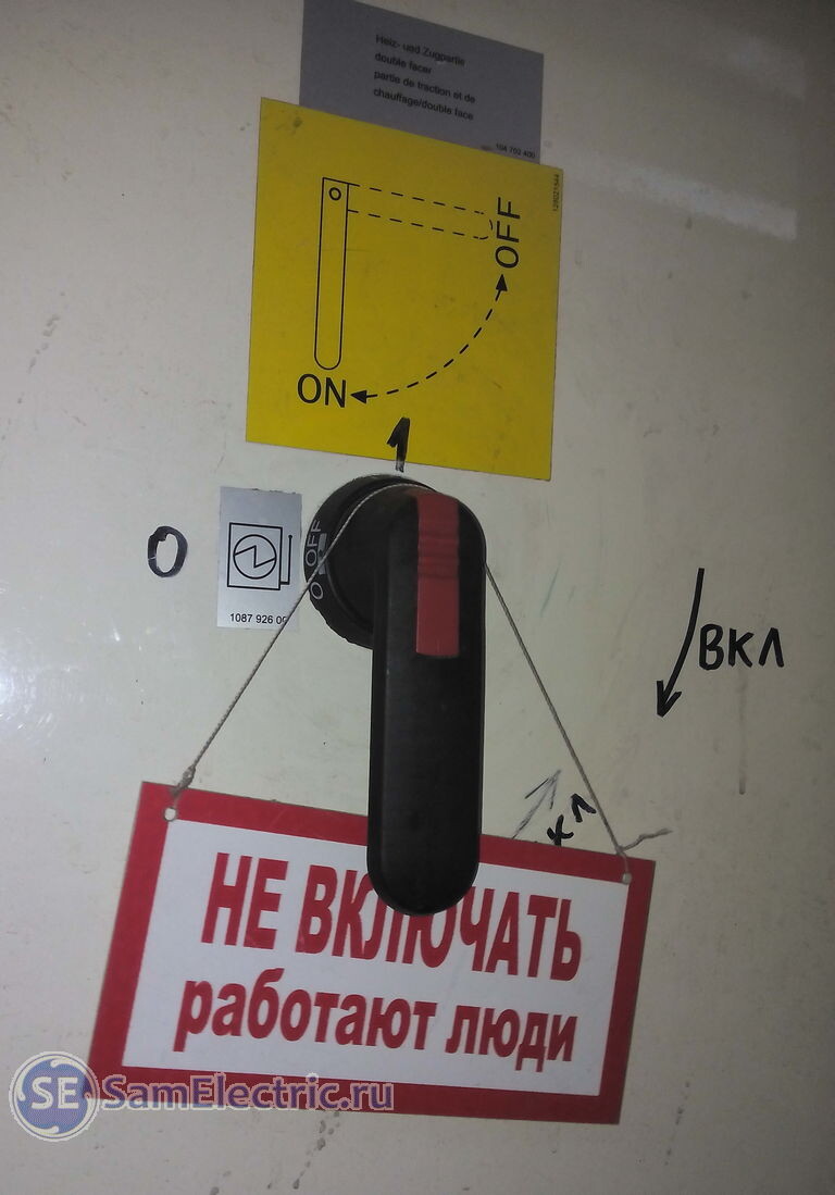 Предупредительный плакат был вывешен, когда ручка была в положении "0".P.S. Виновные найдены, наказаны и лишены премии.