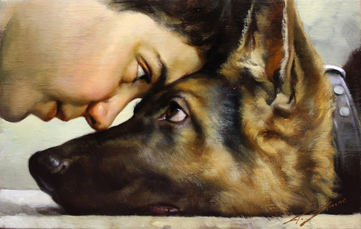 (20)Какие глупости говорят люди, будто бы собаки не выдерживают человеческого взгляда. (21)Я могу глядеть в глаза Хозяина хоть целый вечер не отрываясь.