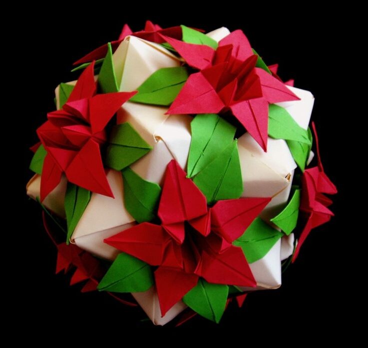 Оригами кусудама — это уникальный и эстетически привлекательный вид модульного оригами, в котором модели создаются из нескольких одинаковых модулей, собираемых в шарообразные конструкции. Название "кусудама" происходит от японских слов "кусу" (что означает "лечебное") и "дама" (что означает "шар"), что указывает на историческое использование кусудамы в качестве амулетов или декоративных предметов, связанных с исцелением и защитой. 🟦 Основные особенности оригами кусудама: 1. Модули: Кусудама обычно состоит из множества одинаковых модулей, которые складываются отдельно. Каждый модуль имеет свою форму, часто напоминающую треугольник или квадрат. 2. Сборка: Модули соединяются друг с другом без использования клея, что позволяет создавать объемные фигуры. Обычно модули вставляются и фиксируются друг в друге, образуя крепкую конструкцию. 3. Декоративность: Кусудамы часто используются как декоративные элементы. Их можно подвешивать, использовать как настенные украшения или дарить в качестве п