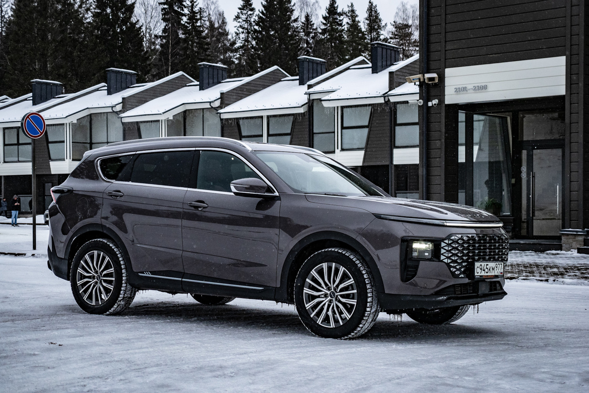 Подогревы есть везде, где нужно (лобовое стекло, форсунки, руль и т.д.). Есть автоторможение, адаптивный круиз, хотя рулевой ассистент с удержанием в центре полосы не предусмотрен. Есть, конечно, и голосовой ассистент, которому можно поручить открыть, например, люк, когда на нем лежит куча снега. Пассажиры оценят! А вот передние стекла, в отличие от Tiggo 8 Pro Max, одинарные. На ходу в салоне шумновато.