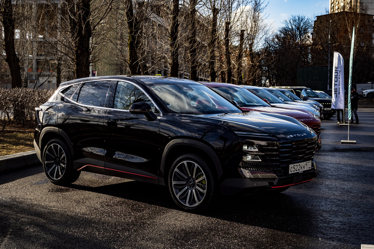 Как по мне, автомобиль трудно назвать красивым, но он точно притягивает взгляды и даже запоминается, что для китайских автомобилей нонсенс. Передок в стиле «ламбо», откидные ручки дверей сильно наклонённые задние стойки и, конечно же, огромные двадцатидюймовые колёса с шинами Leao Ice I-15 Winter Defender SUV размерности 255/45 R20 — точно такие же по размеру, как на более крупных кроссоверах Jetour T2 и Х90 Plus.