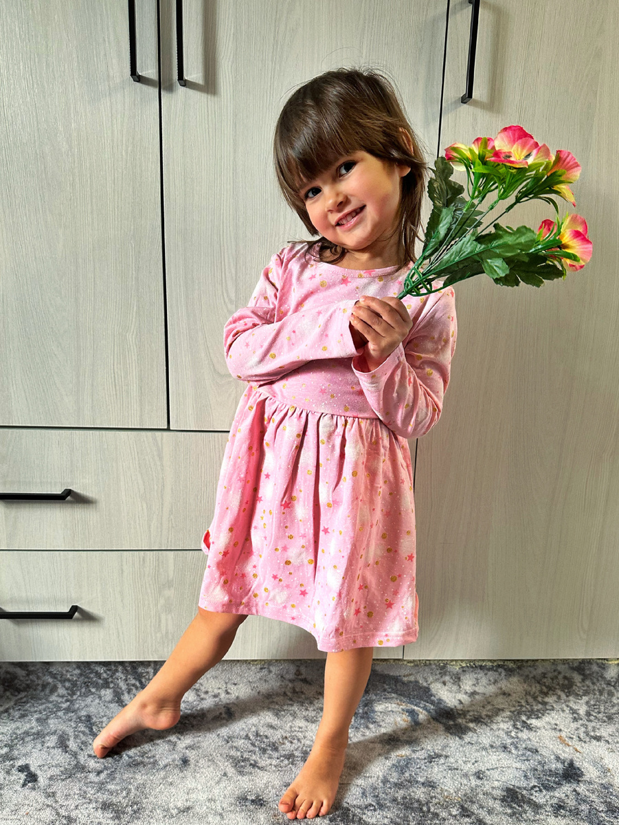 Дочке сейчас 3 года и 6 месяцев: рост 100 см, вес 15 кг. Нога 16,5 см (26 размер). Почти все с прошлой весны и лета дочке мало, кроме спортивного костюма и футболок. Обувь сейчас еще донашиваем с прошлой осени, а вот на лето нужно будет покупать новую. В Крыму весна начинается раньше, чем в средней полосе России, поэтому обзор будет ранний. Но одежду я в основном купила для сада, так что может быть и актуально. Воспитатель рекомендовала весной в сад длинный рукав, поэтому в этой подборке вся одежда будет с рукавом. В Крыму нет детского мира, а ближайший магазин с детскими товарами в Ялте, поэтому довольствуюсь выбором на ВБ, но я в принципе и в МО в основном только им и пользовалась. Я заказала целых 6 штук, чтобы выбрать лучшие, но не смогла. В итоге взяли все. Красное 304392117, розовое 183195619, голубое 240808499 Розовое 287943323, зеленое 331462479, желтое 192218175 На фото с Алиной можете посмотреть, как сидят некоторые модели на ребенке. На самом деле все платья классные, поэтом