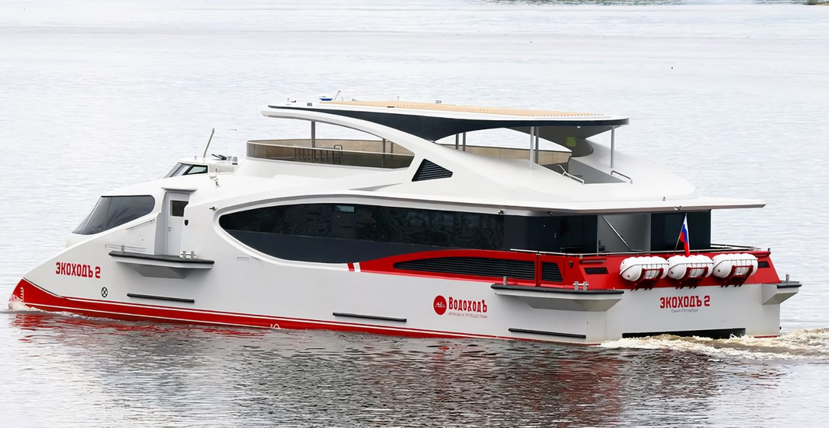 Отечественная компания Sitronics Group разработала пассажирский электрокатамаран «Экоходъ 2», который начнет совершать круизы по Волге уже этим летом. У судна две палубы — основная вмещает 114 человек, а в носовой части находится салон повышенной комфортности на 16 человек. Подробные технические характеристики пока не раскрываются, но известно, что у катамарана две батареи мощностью 400 кВт каждая. Одним из главных преимуществ разработчики называют пониженный вдвое уровень шума во время движения по сравнению с дизельными аналогами, что должно сделать «прогулки удобными и приятными для туристов и жителей».